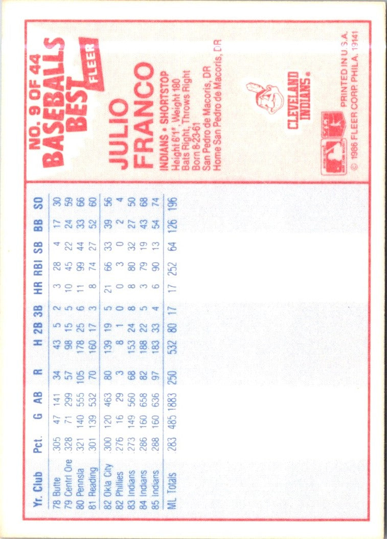 1986 Fleer Baseball's Best Sluggers vs. Pitchers Julio Franco #9