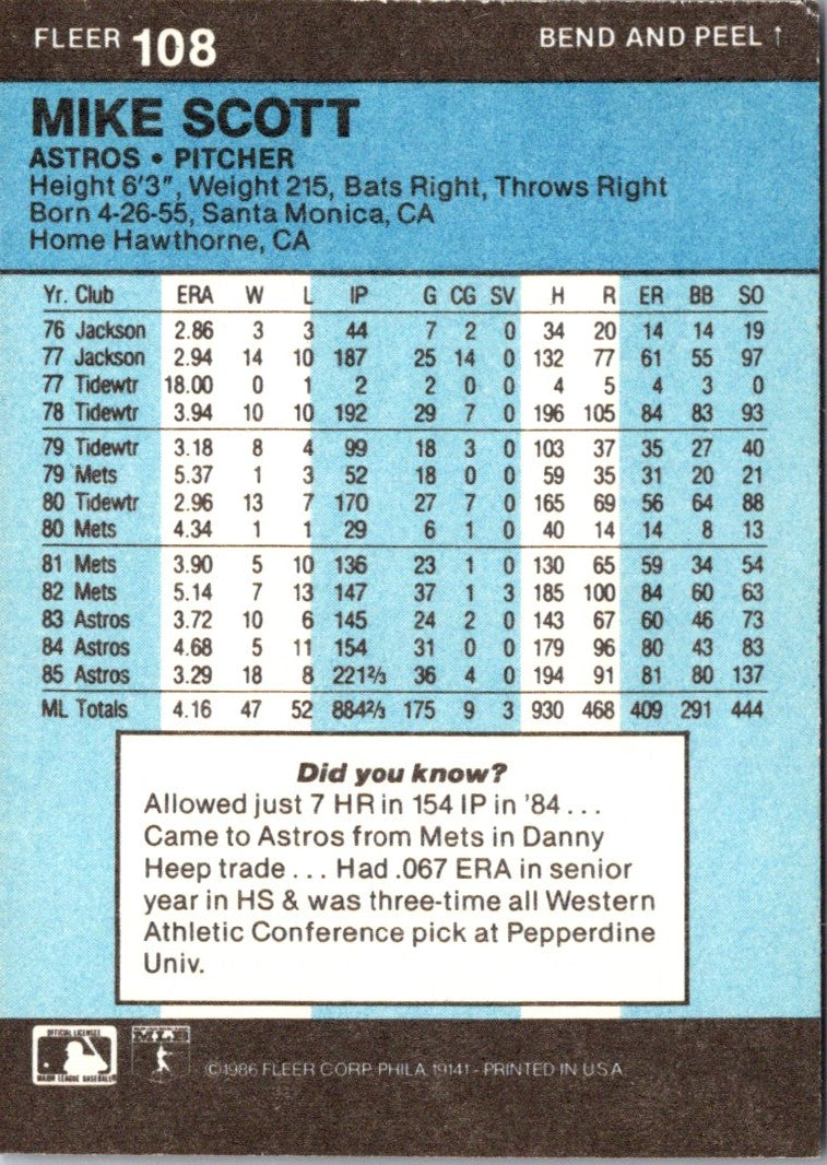 This 1986 Fleer Star Sticker featuring Mike Scott of the Houston Astros is a great addition to any sports memorabilia collection. Scott was a six-time MLB All-Star, and in 1986, he was the National League Cy Young Award winner. This sticker has bright colors, and Scott's name and number are printed clearly. The sticker is in mint condition and is perfect for any Houston Astros fan.