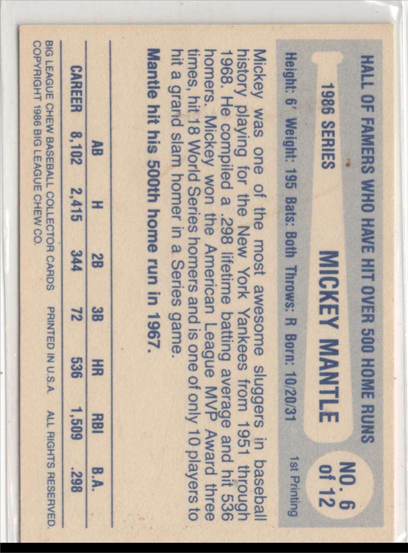 This top-notch 1986 Home Run Legends Mickey Mantle #6 New York Yankees figure is the perfect way to show off your love for the Yankees and the legend himself. Featuring the iconic pinstripes of the Yankees and the unique facial features of Mantle, this figure is sure to draw the attention of any baseball fan. Crafted from the highest quality materials, this figure is sure to last for years to come and be a treasured part of your collection. Show off your love for the Yankees and the legendary Mickey Mantle with this amazing collectible!