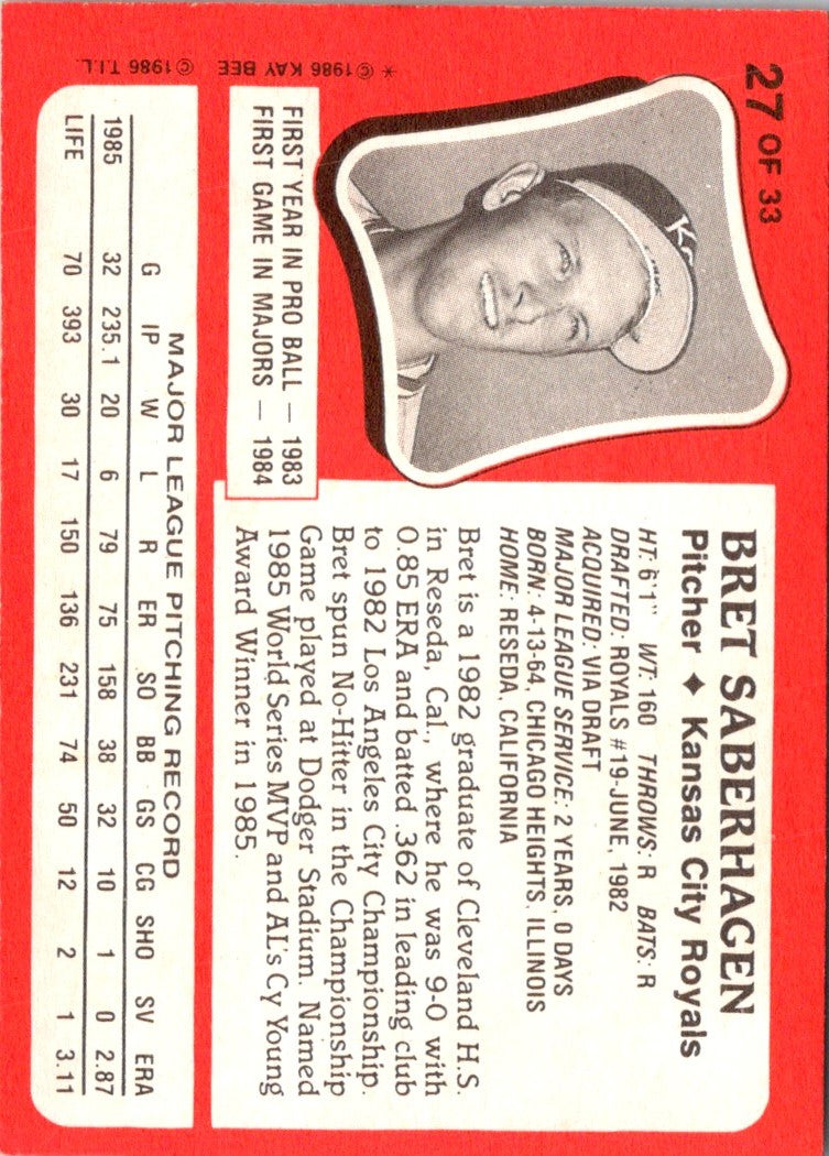 This 1986 Kaybee Bret Saberhagen #2 Kansas City Royals figurine is an excellent collectible item for any baseball enthusiast. Crafted from quality materials, the figurine is highly detailed and features Saberhagen in his classic Royals uniform. The 3-dimensional design captures the action and excitement of the game, making it a great decoration for any Royals fan's collection. With its vibrant colors and dynamic design, this figurine is sure to be a hit with any baseball lover. Add this piece to your collection today and show your love for the Kansas City Royals!