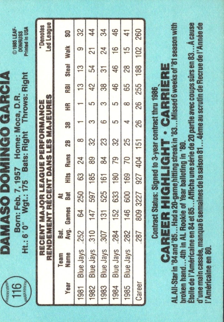 1986 Leaf Damaso Garcia #116