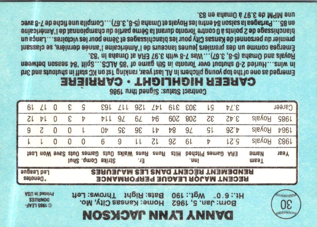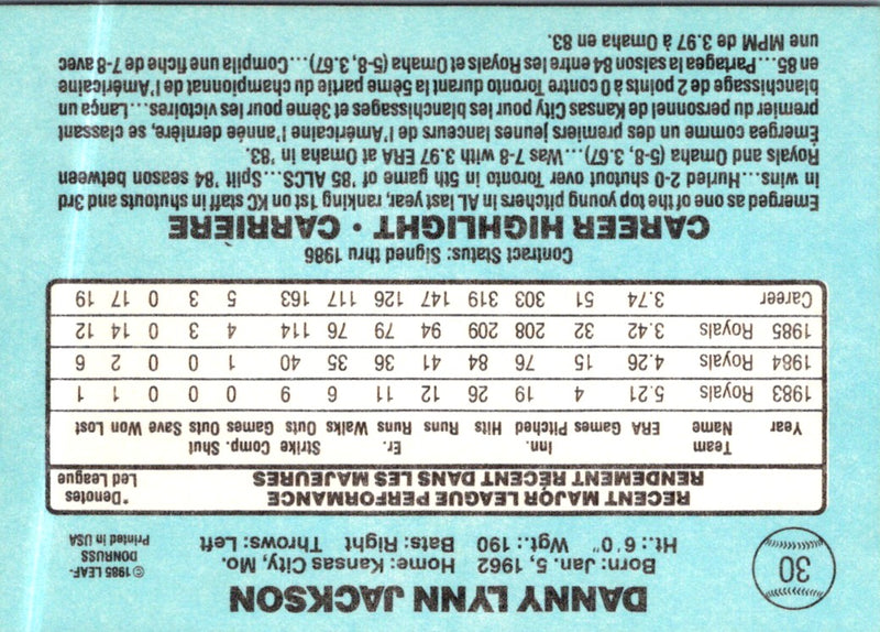 1986 Leaf Danny Jackson #30