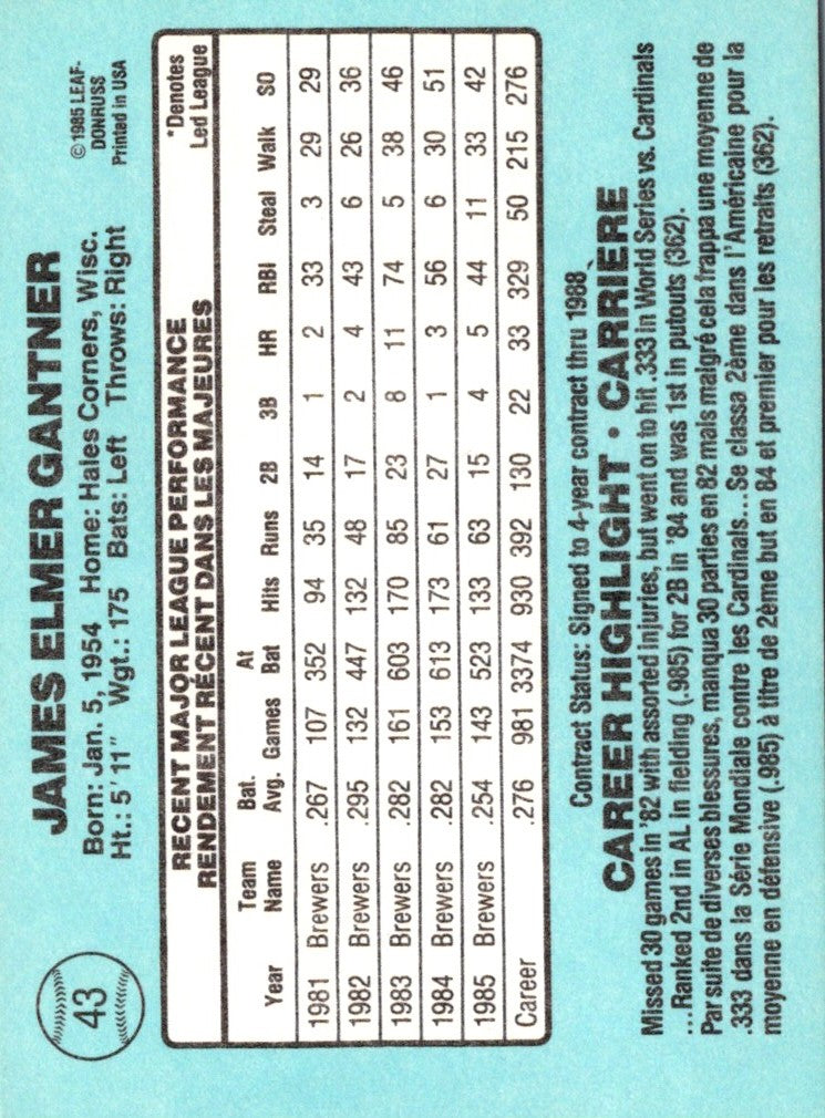This 1986 Leaf Jim Gantner #43 Milwaukee Brewers card is a must-have for any Brewers fan! Featuring a classic design and sharp graphics, this card is sure to be a great addition to any collection. Gantner had an impressive career with the Brewers, having played 17 seasons with the team and earning multiple All-Star appearances. This card is a great way to honor the legacy of this longtime Brewer. Don't miss out on this classic card!