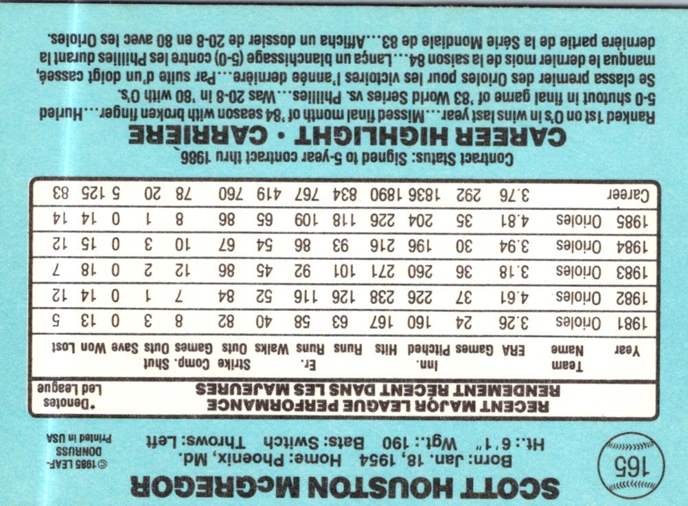 Description: 1986 Leaf Scott McGregor #165