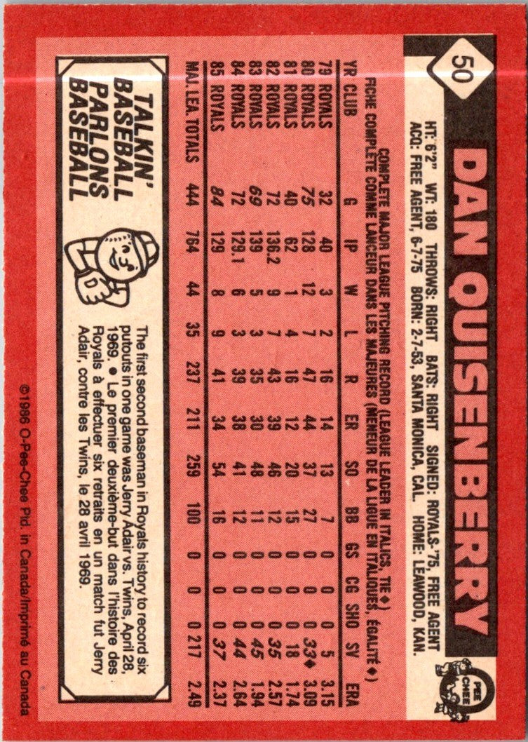 1986 O-Pee-Chee Dan Quisenberry #50