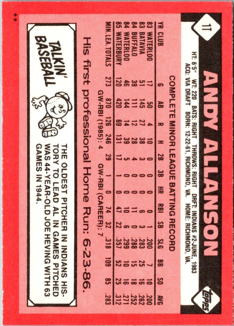 Description: 1986 Topps Traded Andy Allanson #1T