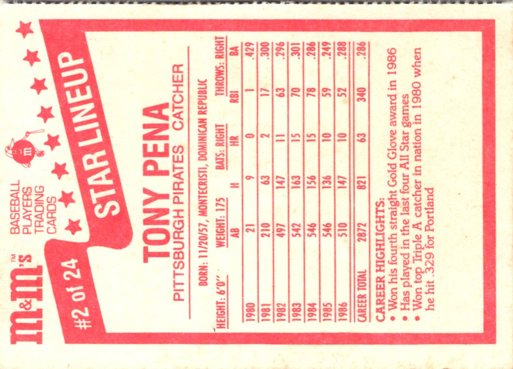 Description: 1987 M&M's Star Lineup Tony Pena #2
