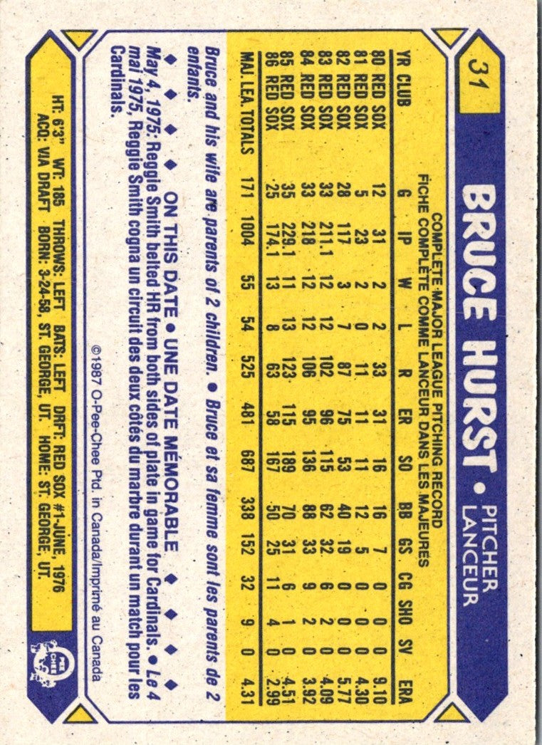 This 1987 O-Pee-Chee Bruce Hurst #31Boston Red Sox card is the perfect addition to any Red Sox fan's collection. Featuring a vibrant, full-color image of Hurst in his classic Red Sox uniform, this card is sure to bring a smile to any fan. The card measures 2.5" x 3.5" and is sure to be a great conversation starter. With its glossy finish and sharp corners, it is sure to last a lifetime. Add this classic piece of Red Sox memorabilia to your collection today!