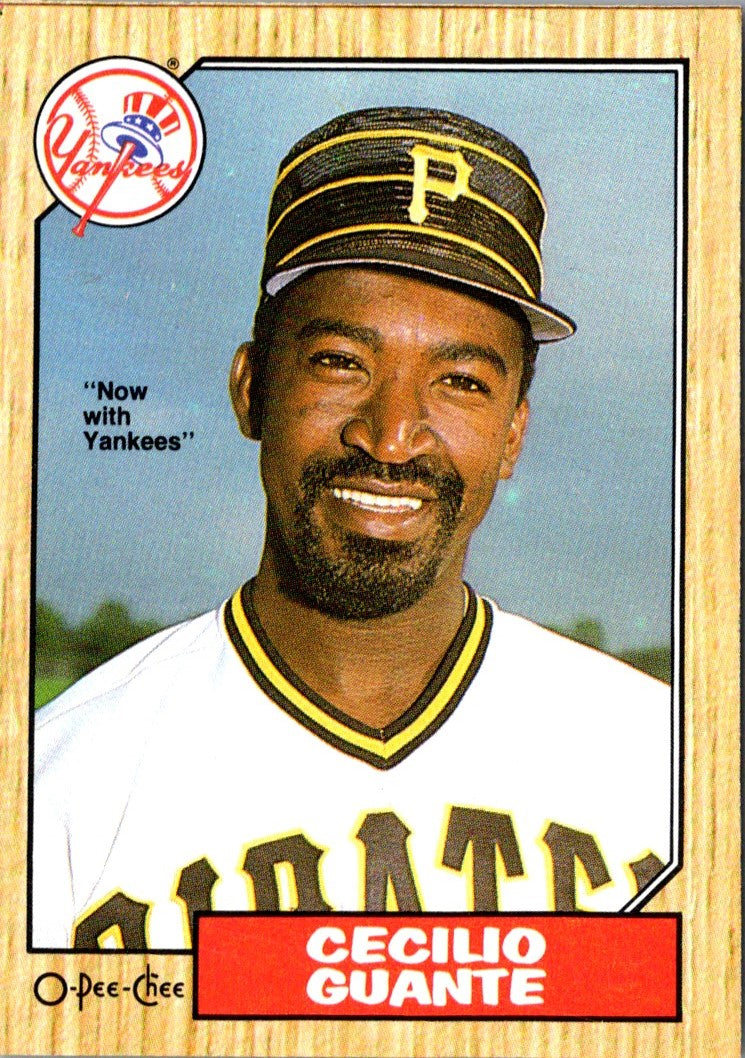1987 O-Pee-Chee #219 features Cecilio Guante, the starting catcher for the New York Yankees. This card has a glossy finish and features a full-color photo of Guante in his classic Yankees uniform. The back of the card shows Guante's stats for the season, including his batting average and home run totals. This card is a must-have for any Yankees fan or collector, and a great way to commemorate a beloved Yankees player. Add this card to your collection today!