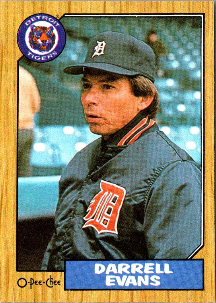 This 1987 O-Pee-Chee Darrell Evans #265 Detroit Tigers card features a great shot of the 3 time All-Star, 2 time Gold Glove winner, and 1984 World Series Champion. This card is a must-have for any collector of vintage MLB cards, or someone looking to get a piece of baseball history. The card is in excellent condition, with bright colors and sharp edges, making it a great addition to any collection. It's sure to bring back memories of the great career of one of the most versatile players in the history of the game.