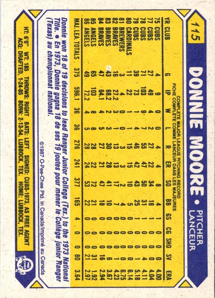 1987 O-Pee-Chee Donnie Moore #115