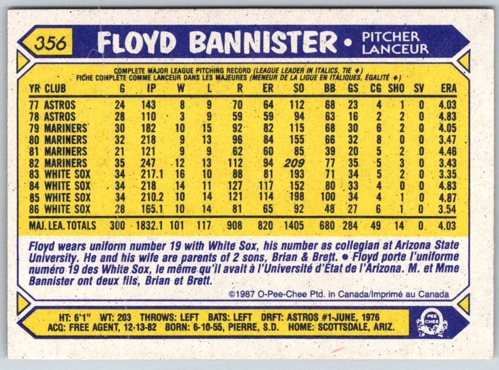 1987 O-Pee-Chee Floyd Bannister #356