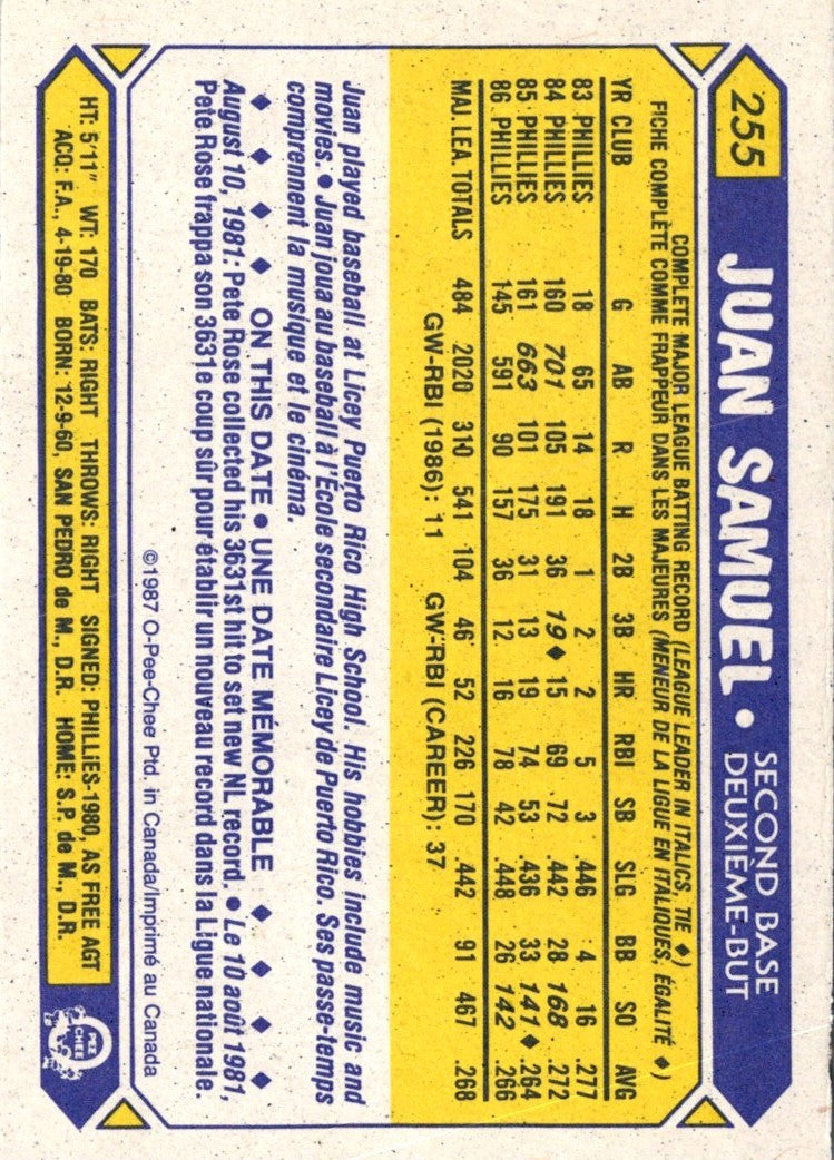 1987 O-Pee-Chee Juan Samuel #255