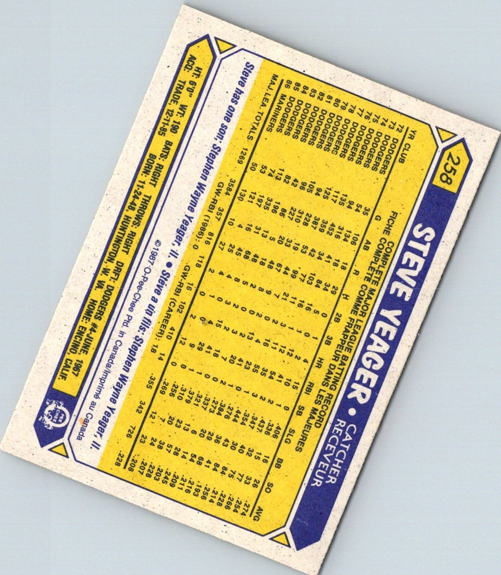 Steve Yeager was the catcher for the Seattle Mariners in 1987. His O-Pee-Chee #258 card is a must-have for any Mariners fan or baseball card collector. Featuring a classic close-up of Yeager in his Mariner's uniform, the card captures the spirit of the game and celebrates the career of one of the most beloved players in team history. The card is printed on high-quality card stock with a glossy finish, ensuring it will hold up to years of wear and tear. Whether you're looking to start or add to your card collection, this card is a must-have for any Mariners fan.