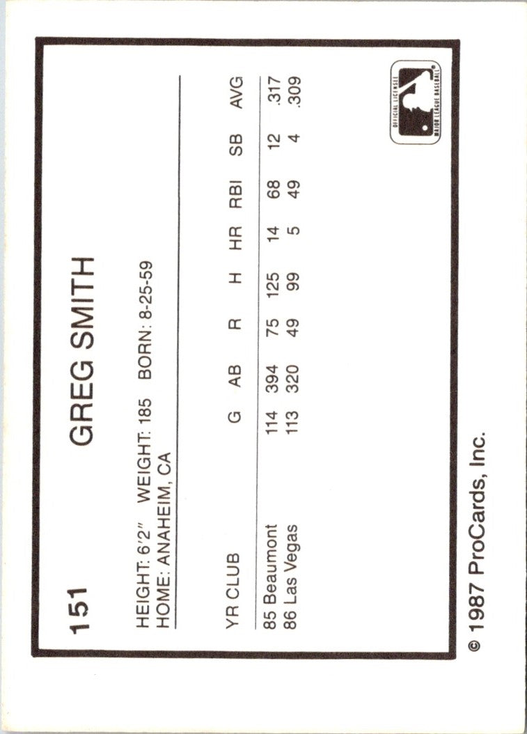 This 1987 ProCards Greg Smith #151 Oklahoma City 89ers card is the perfect addition to any sports fan's collection. Featuring a full-color photographic image of Smith, it is sure to bring back memories of his days with the 89ers. This card is printed on quality cardstock and features the team logo and Smith's name and number, making it a great collectible. Add this piece of sports history to your collection today!