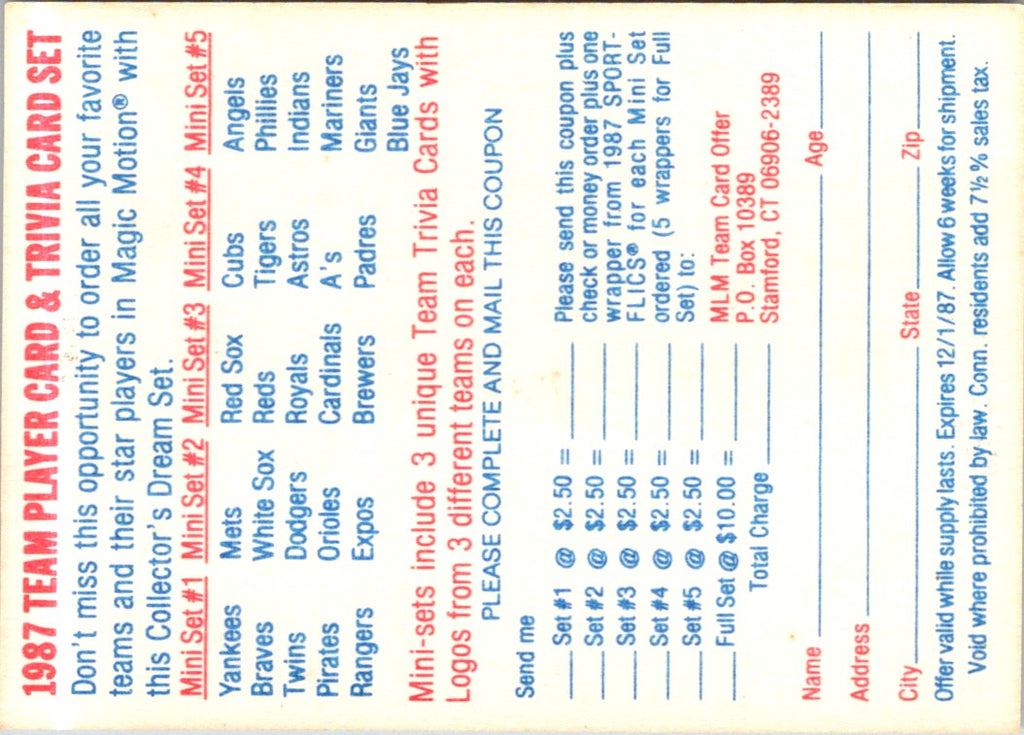 Description: 1987 Sportflics Team Logo Trivia Team Season Records #1