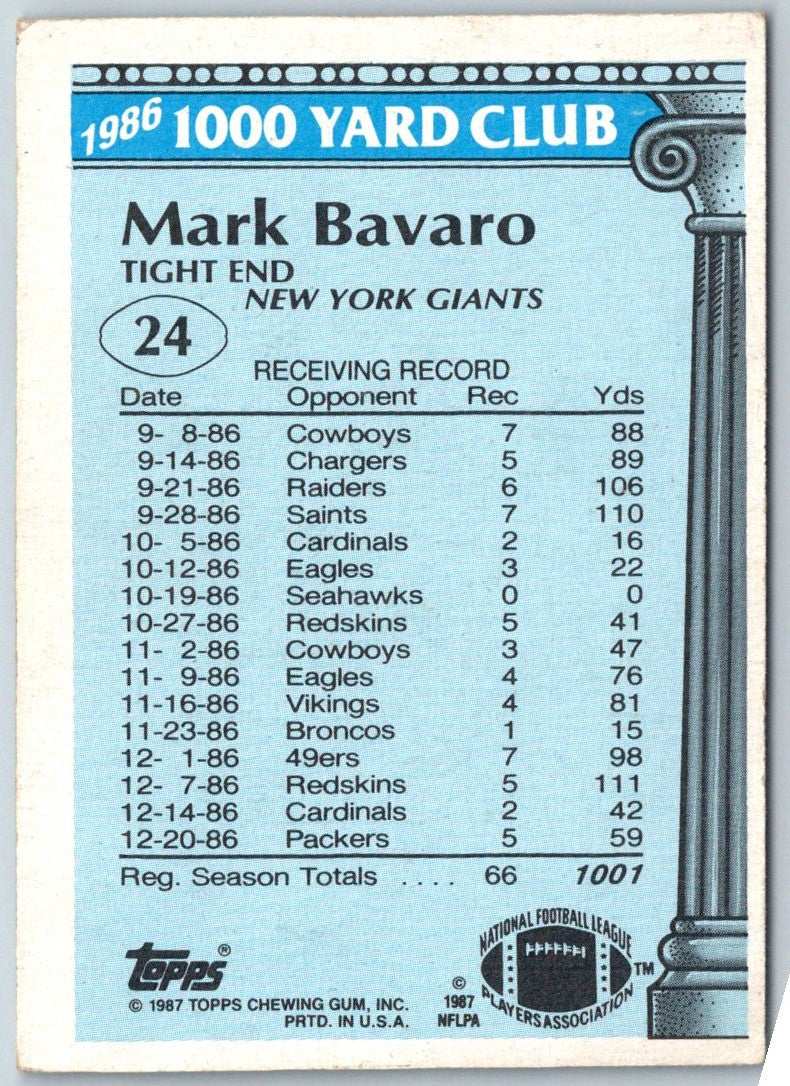 1987 Topps 1000 Yard Club Mark Bavaro #24