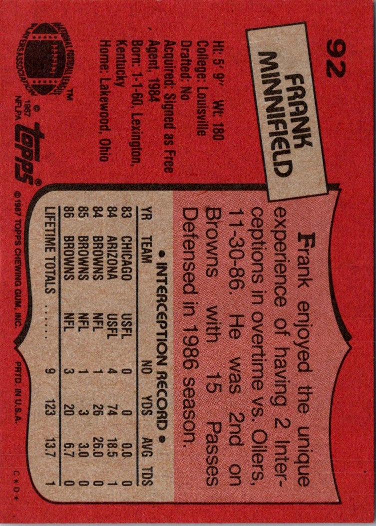 1987 Topps Frank Minnifield #92