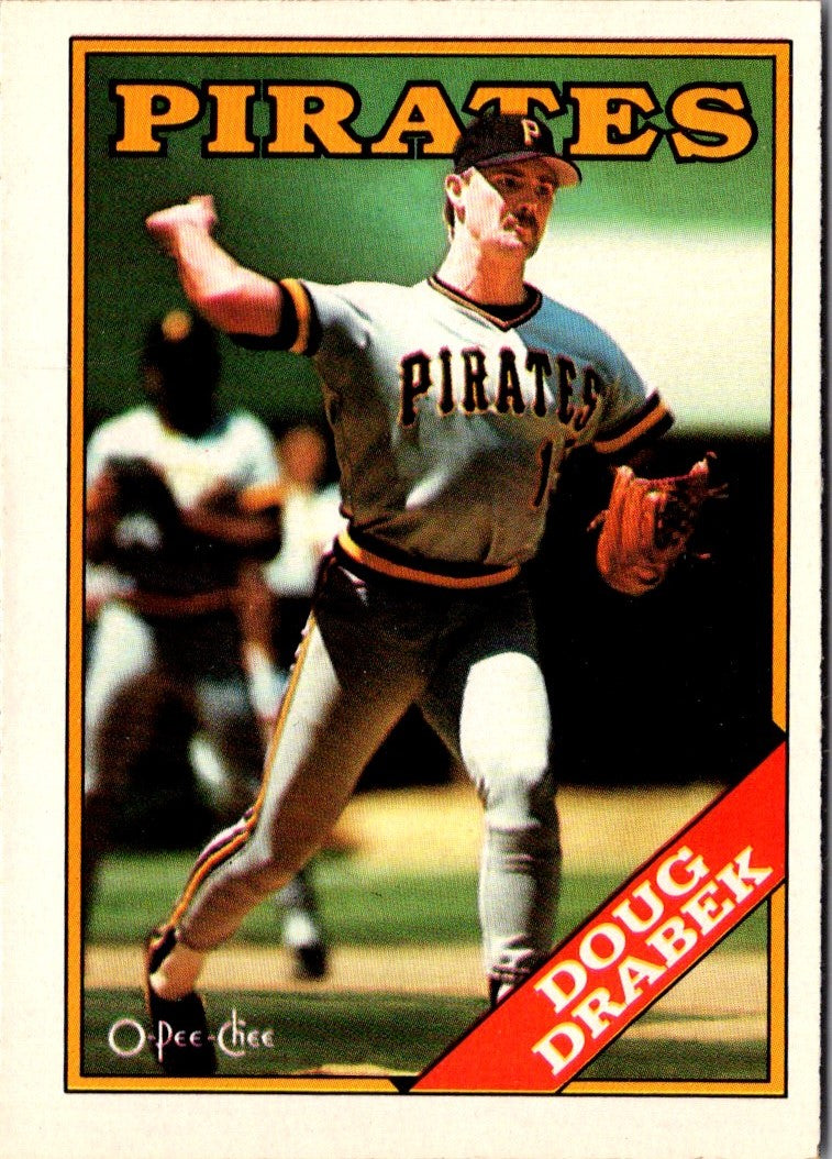 Doug Drabek was a star pitcher for the Pittsburgh Pirates from 1988-1990. This 1988 O-Pee-Chee card captures him in mid-pitch, a perfect addition to any baseball fan's collection. With bright colors and bold, classic design, this card will make a great addition to your collection. It's a must-have for any fan of the Pirates or Drabek himself. Add this piece of baseball history to your collection today!