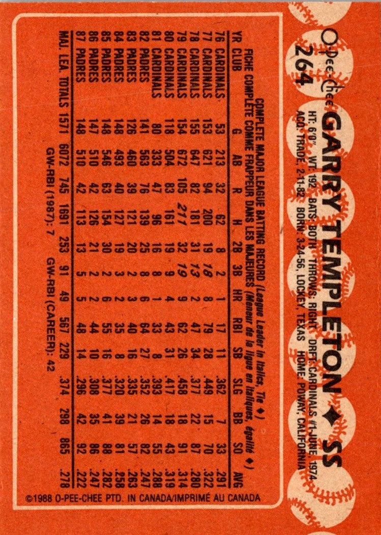This 1988 O-Pee-Chee Garry Templeton #264 San Diego Padres card is a great addition to any sports trading card collection. Featuring Garry Templeton's image, this card is sure to be a conversation starter in any collection. The card contains all of the basic stats and information about the player, including a brief biography on the back. Add this card to your collection and be the envy of your friends.
