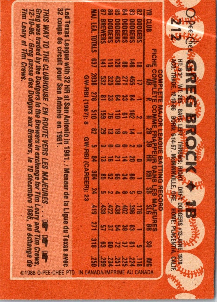 This 1988 O-Pee-Chee Greg Brock trading card is a must-have item for any Milwaukee Brewers fan. Featuring a full-colour image of the famous outfielder, this card is a great addition to any collection. It is printed on high-quality card stock and is sure to last for years. Show off your team pride with this card and celebrate the legacy of one of the Brewers' all-time greats.