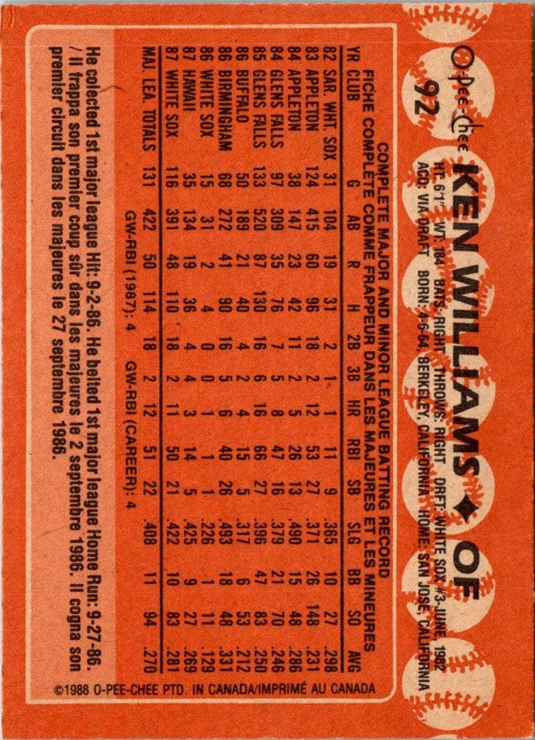 1988 O-Pee-Chee Ken Williams #92