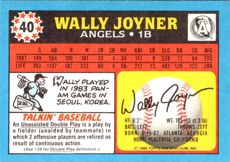 Description: 1988 Panini Stickers Wally Joyner #40