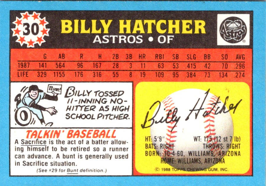 Description: 1988 Red Foley Stickers Billy Hatcher #30