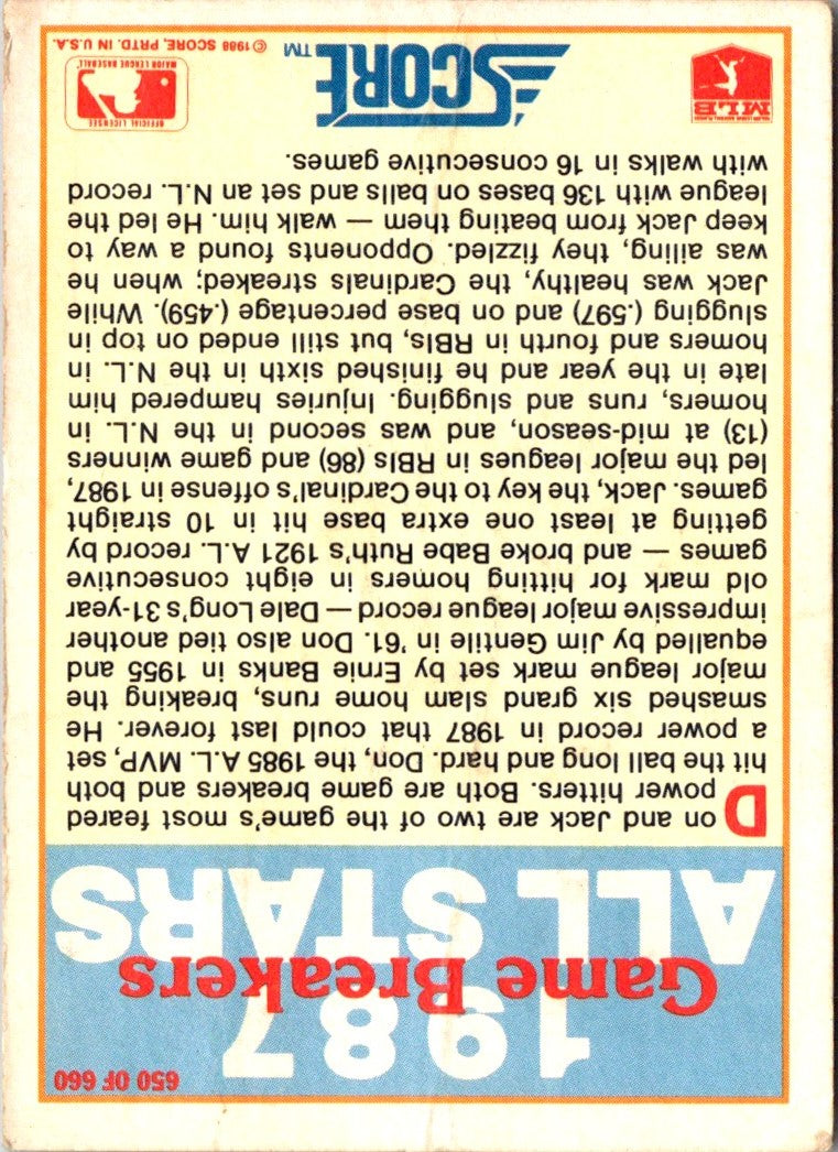 Description: 1988 Score Don Mattingly/Jack Clark #650
