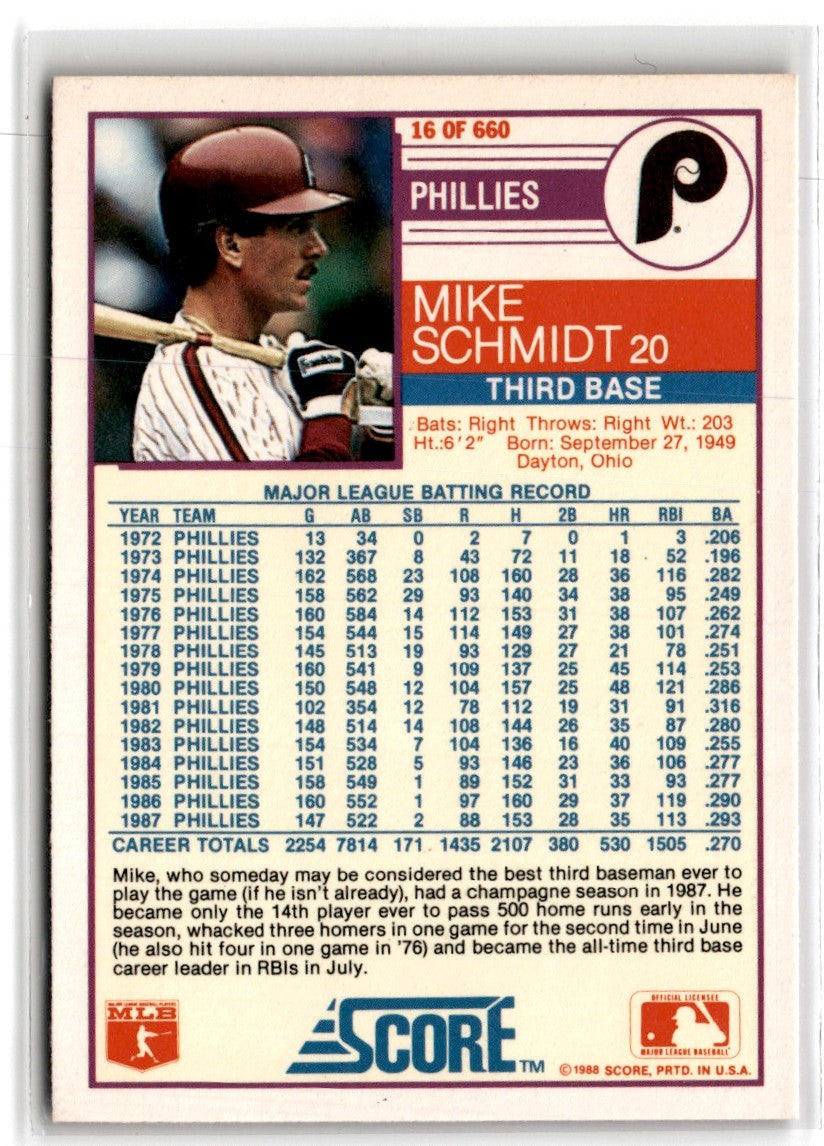 Description: 1988 Score Mike Schmidt #16