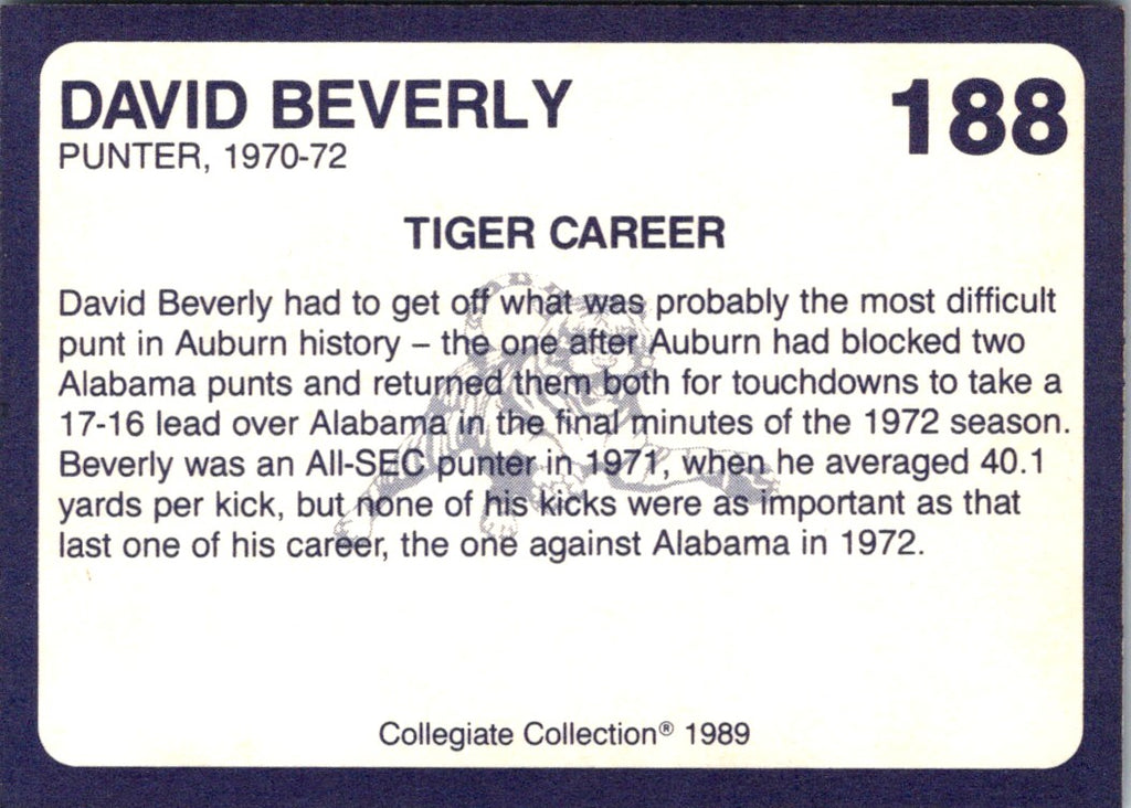 1989 Collegiate Collection Auburn Coke 580 David Beverly #188