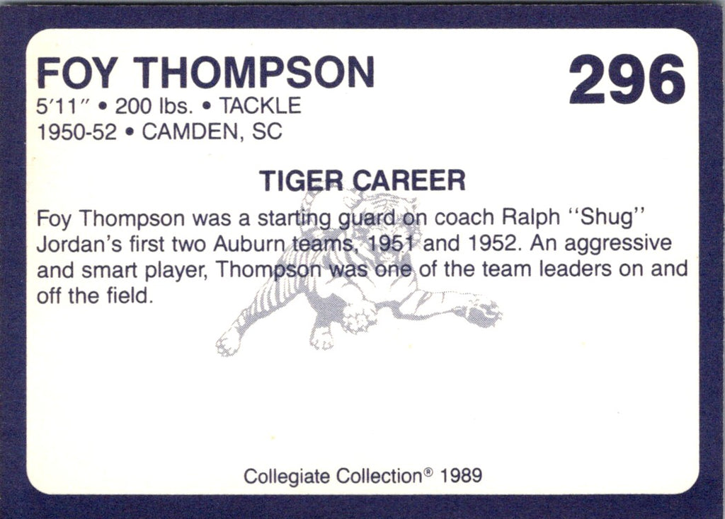 1989 Collegiate Collection Auburn Coke 580 Foy Thompson #296