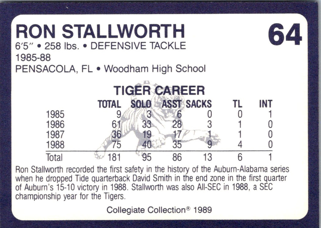 1989 Collegiate Collection Auburn Coke 580 Ron Stallworth #64