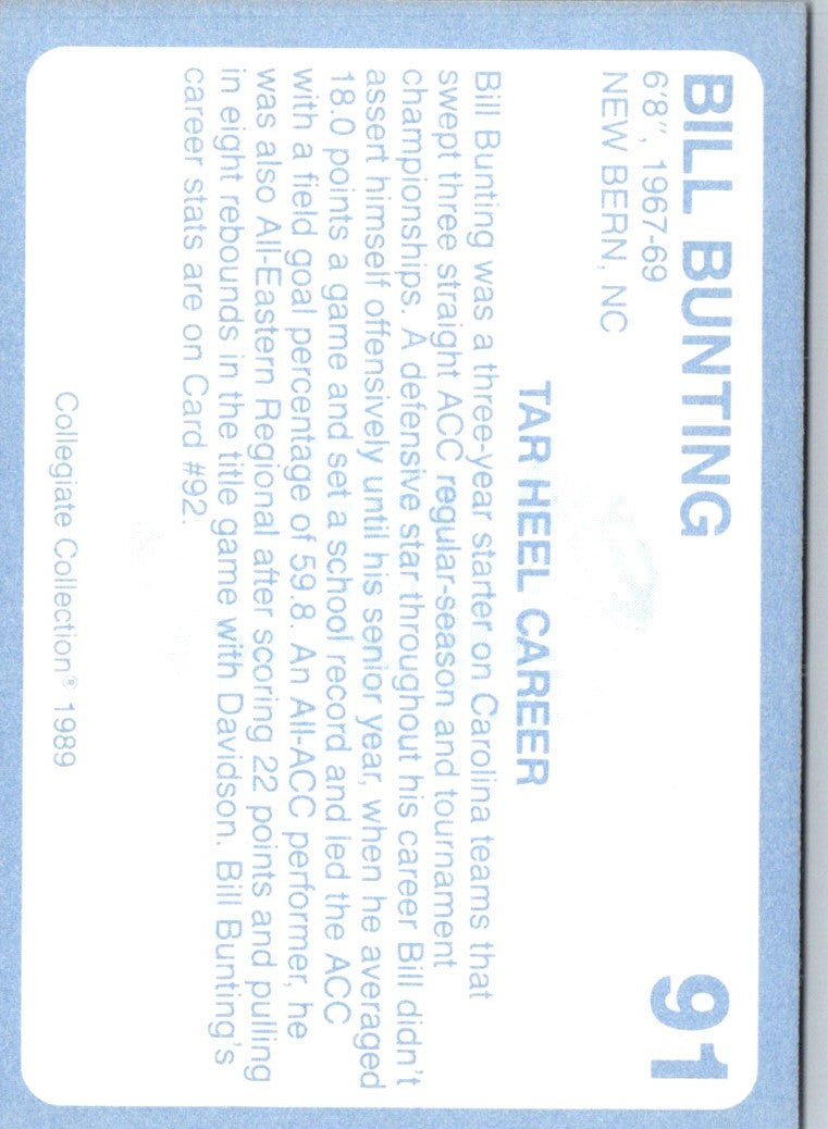 1989 Collegiate Collection North Carolina's Finest Bill Bunting #91