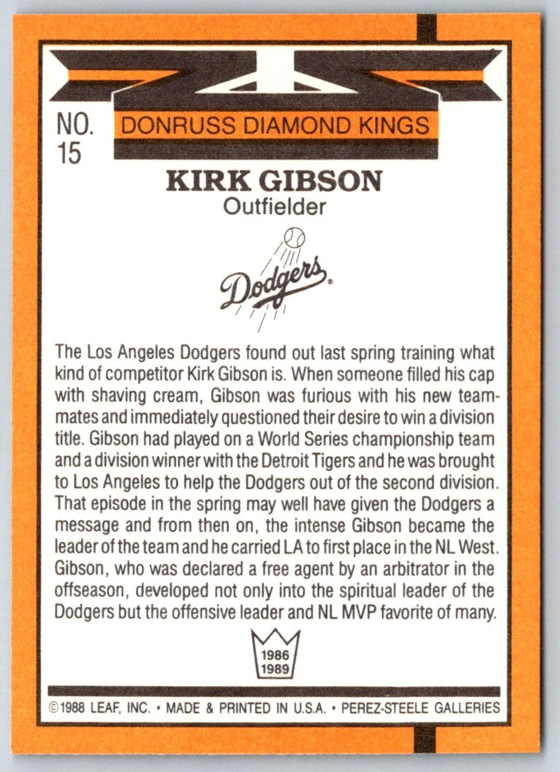 1989 Donruss Diamond Kings Kirk Gibson #15