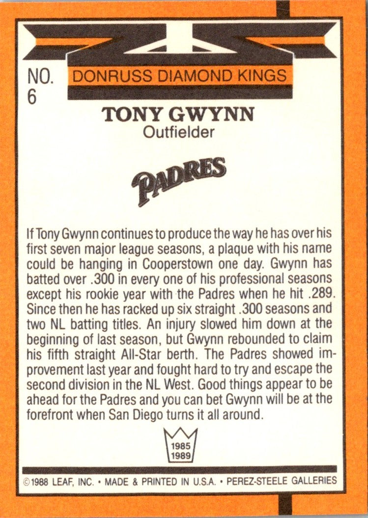 1989 Donruss Diamond Kings Tony Gwynn #6