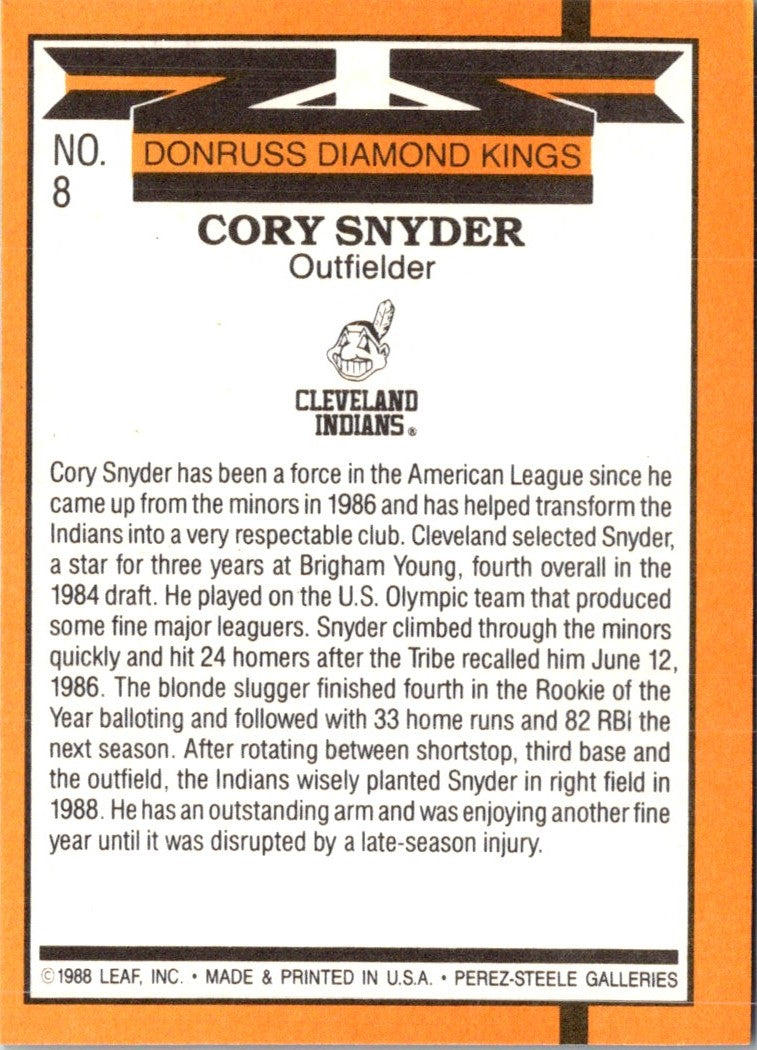 Description: 1989 Donruss Super Diamond Kings Cory Snyder #8