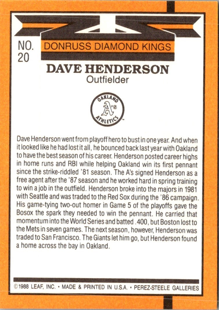Description: 1989 Donruss Super Diamond Kings Dave Henderson #20