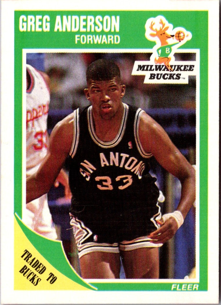 This 1989 Fleer Greg Anderson #85 Milwaukee Bucks card features a sharp, full-colour image of the NBA player in action. Anderson played for the Bucks from 1988-1991 and was part of the team's 1989 Eastern Conference finals run. This card is a great collector's item or addition to any basketball fan's collection. It's an authentic card from the 1989 Fleer series and comes in near-mint condition, ready to be displayed. Don't miss your chance to add this piece of NBA history to your collection!