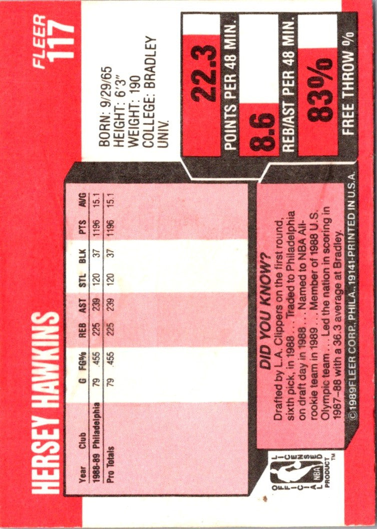 1989 Fleer Hersey Hawkins #117
