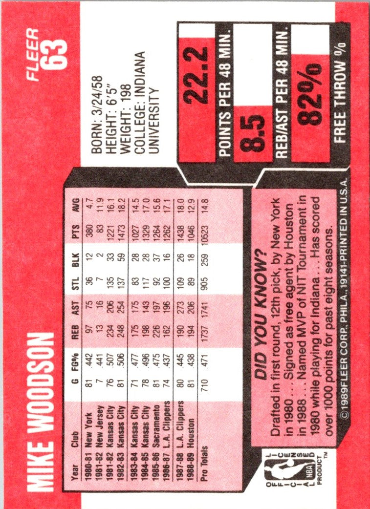 This 1989 Fleer Mike Woodson #63 Houston Rockets card is a must-have for any basketball fan or collector. It features a classic image of Mike Woodson in his Houston Rockets uniform. The card is in near-mint condition, with excellent colors and sharp corners. This card is perfect for any fan of the Houston Rockets, or of Mike Woodson himself. It is a great way to commemorate the career of a basketball legend. Add this card to your collection today and own a piece of NBA history!