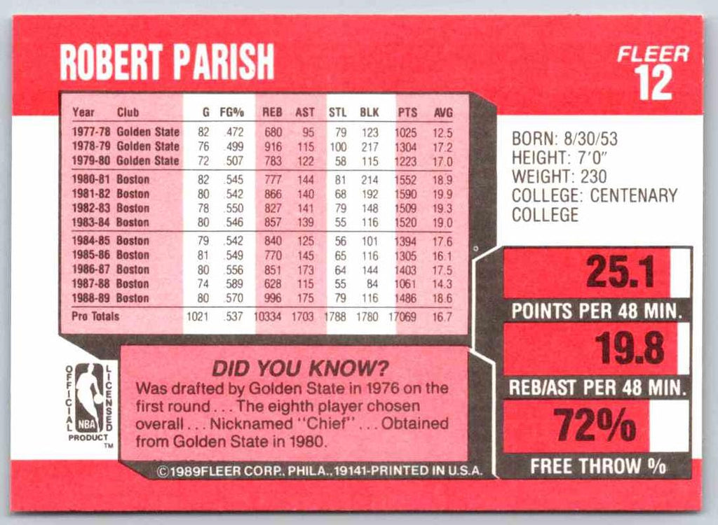 1989 Fleer Robert Parish #12