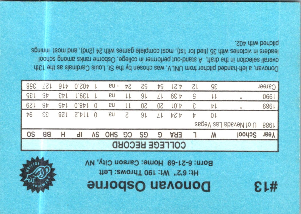 Description: 1990 Classic Draft Picks Donovan Osborne #13