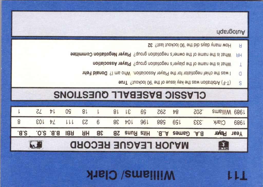 1990 Classic Update Hot Corners - Will Clark/Matt Williams #T11