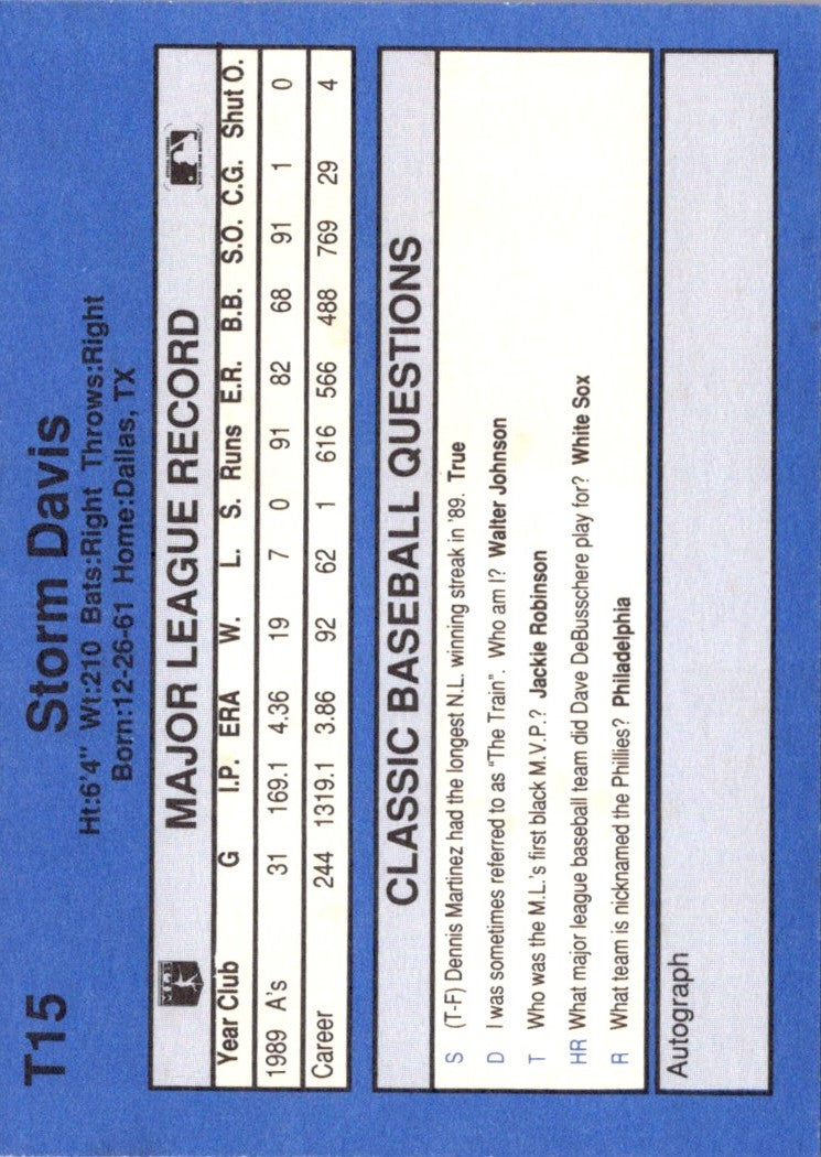 This 1990 Classic Update Storm Davis #T15 Kansas City Royals card is the perfect way to honor the career of this former All-Star pitcher. Showcasing Davis in his Royals uniform, the card highlights his signature pitching style that led him to win two World Series championships. With this card, you can remember the hard work and dedication that Davis put into his career and take part in the Royals’ rich history. Add this card to your collection today and celebrate one of the Royals’ greatest pitchers.