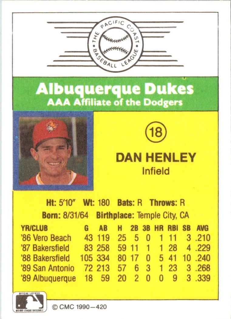 1990 CMC Albuquerque Dukes Dan Henley #18