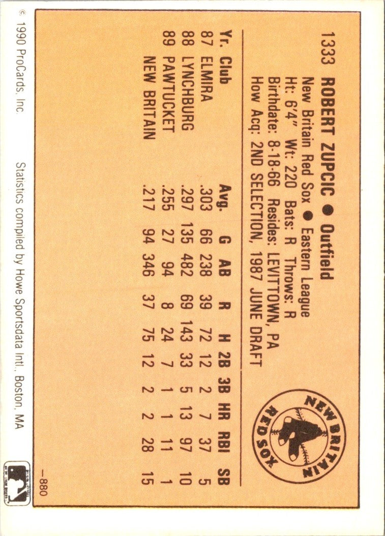 This 1990 CMC Bob Zupcic #880 New Britain Red Sox card is a must-have for any collector. Featuring Zupcic in his classic Red Sox gear, this card is perfect for any fan of the team. The classic design of the card celebrates Zupcic's time with the Red Sox and makes it a great addition to any collection. With sharp corners and a glossy finish, this card is sure to stand out in any collection. It's an essential for any fan of the team, and makes a great gift for any collector. Get it now and add this piece of Red Sox history to your collection!