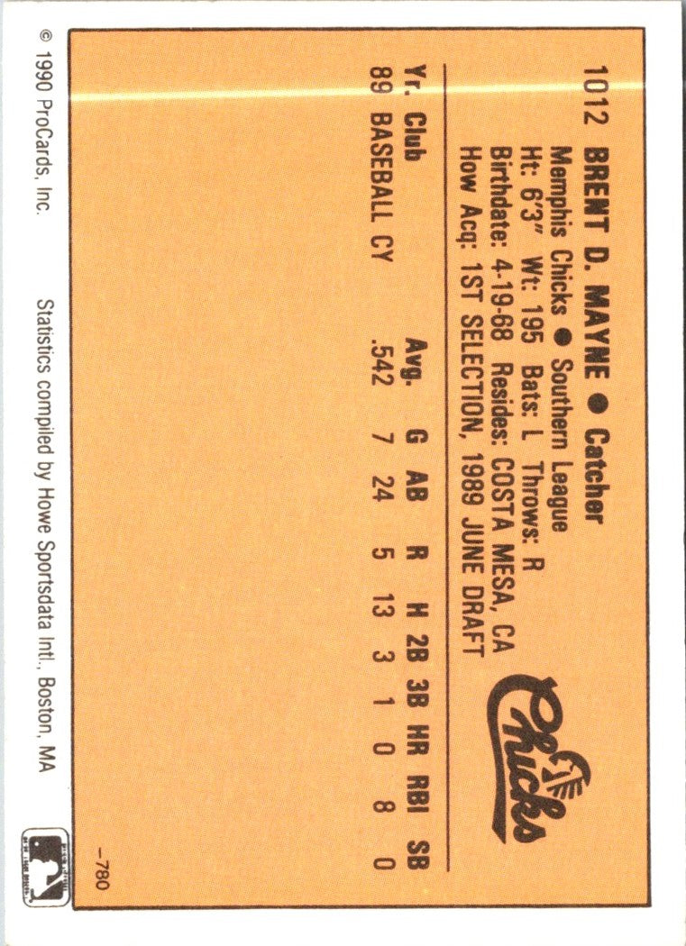 This 1990 CMC Brent Mayne Memphis Chicks card is a must-have for any baseball card collector! Featuring an iconic image of Brent Mayne in his Chicks uniform, this card is sure to be a great addition to your collection. It's printed on a high-quality card stock with vibrant colors, making it a great choice for any collector. With its detailed design and bold colors, this card is sure to stand out in any collection. Add this classic card to your collection today and show off your passion for the game!