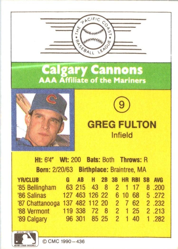 This 1990 CMC Calgary Cannons Greg Fulton #9 jersey is a must-have for any baseball fan. The jersey is made with a premium quality cotton blend fabric, which is lightweight and comfortable for all-day wear. The classic white and red colour scheme pays homage to the Cannons' classic uniform from the 1990 season. The jersey features a full-chest print of the Cannons' logo, as well as the bold #9 on the back. The jersey is perfect for showing off your Calgary Cannons pride or as a great gift for any baseball fan. Get your hands on this classic piece of Cannons history before it's gone!