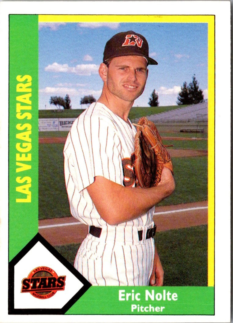 This 1990 CMC Eric Nolte Las Vegas Stars card is an essential piece for any fan of the Las Vegas Stars. This card features a crisp, full-color image of Nolte in action with the Las Vegas Stars, printed on durable cardboard stock. It's perfect for display, and is a great way for fans to honor the memory of the Las Vegas Stars. A must-have for any die-hard fan of the game.